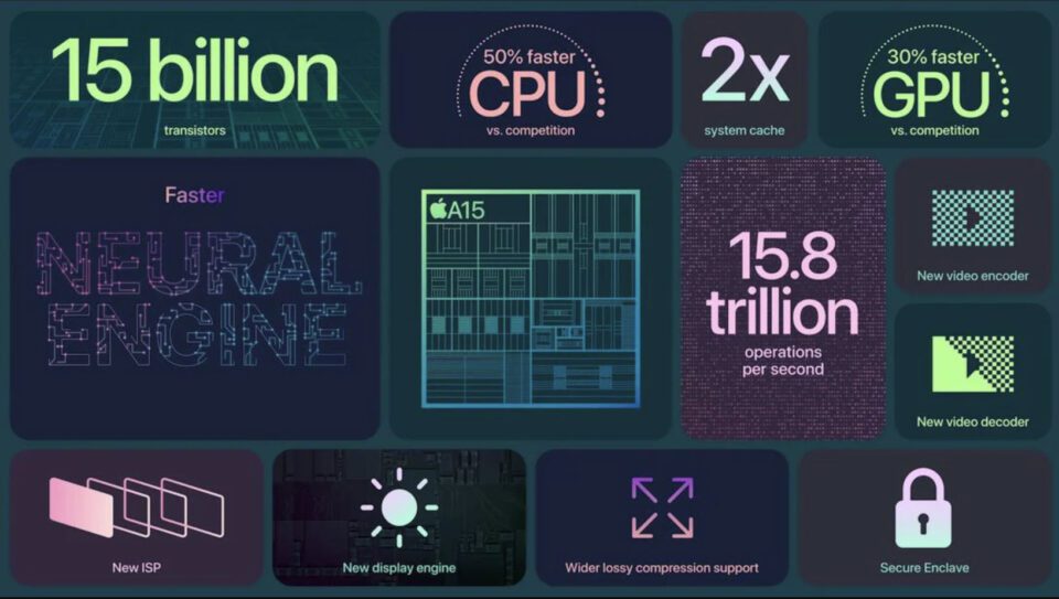 Chip A15 Bionic นั้นถูกเปิดตัวมาตั้งแต่ iPhone 13 ถูกใช้ใน iPhone 13, iPhone 13 Pro และ iPad Mini มันมาพร้อมกับการทำงานที่รวดเร็ว เล่นเกมได้อย่างไหลลื่น เพราะ GPU ก็แรงใช้ได้ อีกทั้งยังมีความสามารถที่ช่วยในการประมวลผลภาพถ่าย ให้มีความคมชัดมากขึ้นอีกด้วยครับ
